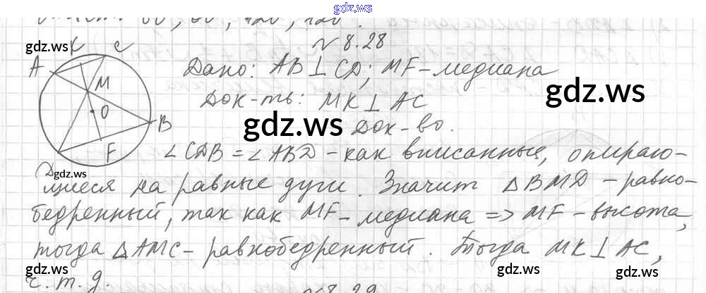 Готовый и полный ответ к § 8. Центральные и вписанные углы Глава 2. Вписанные и описанные четырехугольники - Геометрии 8 класс Мерзляк Учебник Углубленный уровень Алгоритм успеха ФГОС