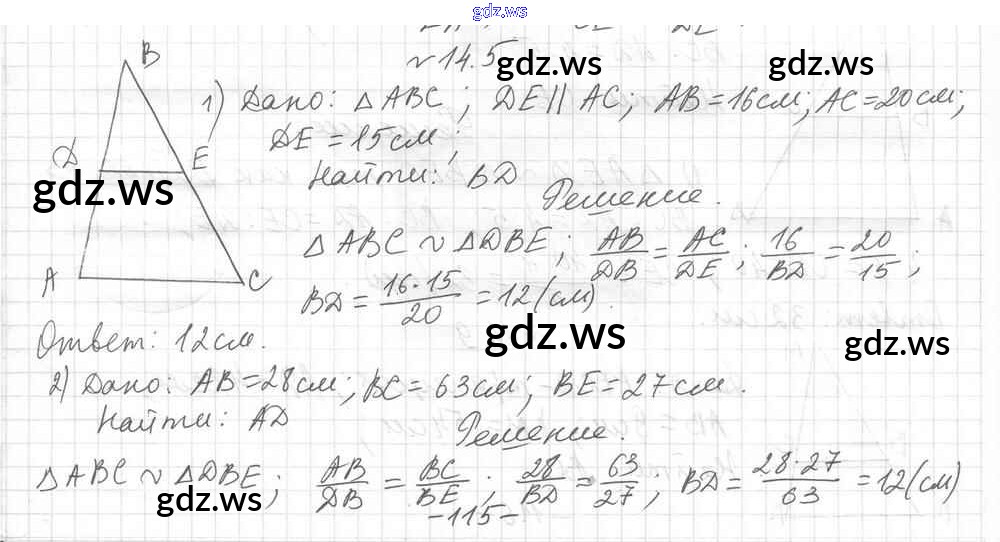 Готовый и полный ответ к § 14. Подобные треугольники Глава 3. Подобие треугольников - Геометрии 8 класс Мерзляк Учебник Углубленный уровень Алгоритм успеха ФГОС