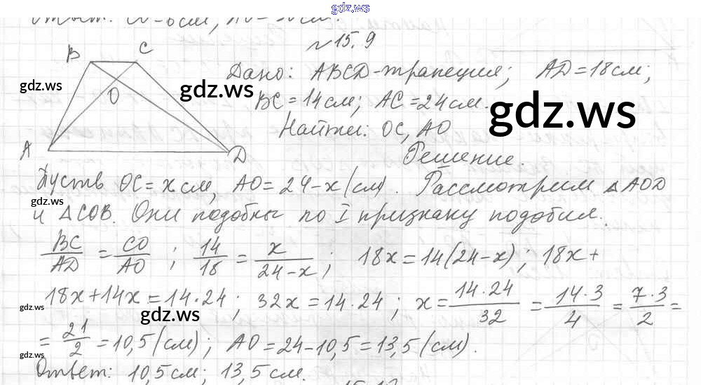 Готовый и полный ответ к § 15. Первый признак подобия треугольников Глава 3. Подобие треугольников - Геометрии 8 класс Мерзляк Учебник Углубленный уровень Алгоритм успеха ФГОС