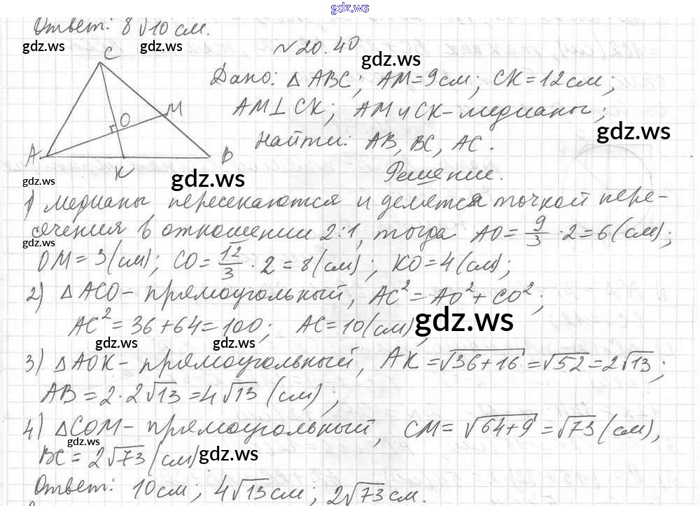 Готовый ответ § 20. Теорема Пифагора Глава 4. Решение прямоугольных треугольников - Геометрии 8 класс Мерзляк Учебник Углубленный уровень Алгоритм успеха ФГОС