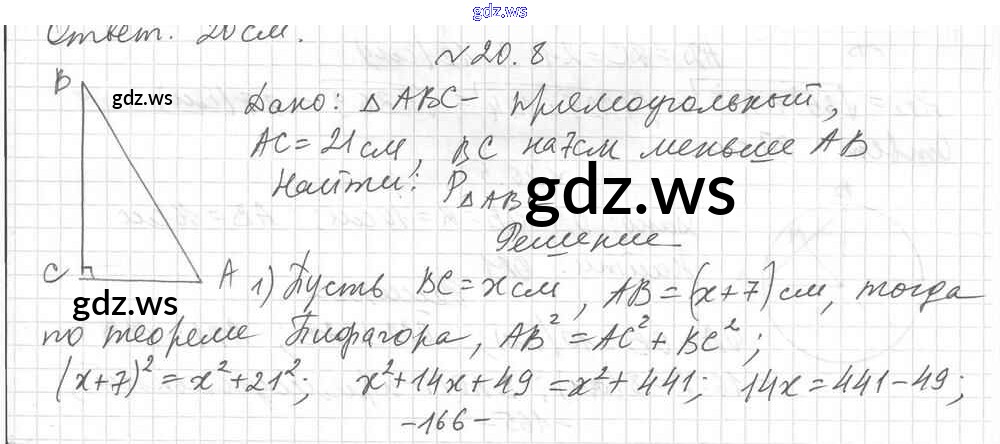 Готовый и полный ответ к § 20. Теорема Пифагора Глава 4. Решение прямоугольных треугольников - Геометрии 8 класс Мерзляк Учебник Углубленный уровень Алгоритм успеха ФГОС
