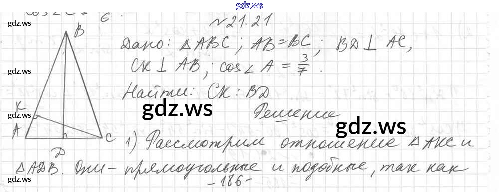 Готовый и полный ответ к § 21. Тригонометрические функции острого угла прямоугольного треугольника Глава 4. Решение прямоугольных треугольников - Геометрии 8 класс Мерзляк Учебник Углубленный уровень Алгоритм успеха ФГОС