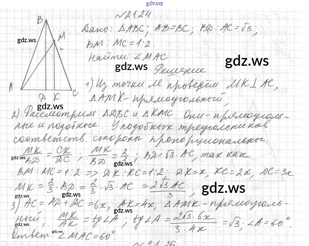 Готовый ответ § 21. Тригонометрические функции острого угла прямоугольного треугольника Глава 4. Решение прямоугольных треугольников - Геометрии 8 класс Мерзляк Учебник Углубленный уровень Алгоритм успеха ФГОС