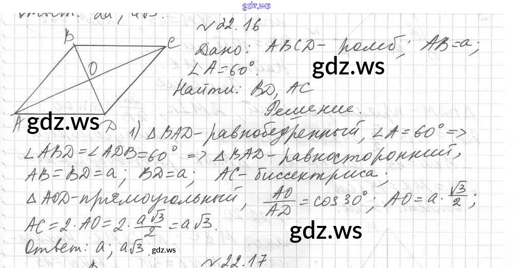 Готовый и полный ответ к § 22. Решение прямоугольных треугольников Глава 4. Решение прямоугольных треугольников - Геометрии 8 класс Мерзляк Учебник Углубленный уровень Алгоритм успеха ФГОС