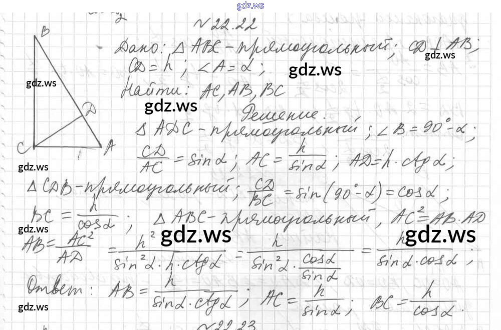 Готовый и полный ответ к § 22. Решение прямоугольных треугольников Глава 4. Решение прямоугольных треугольников - Геометрии 8 класс Мерзляк Учебник Углубленный уровень Алгоритм успеха ФГОС