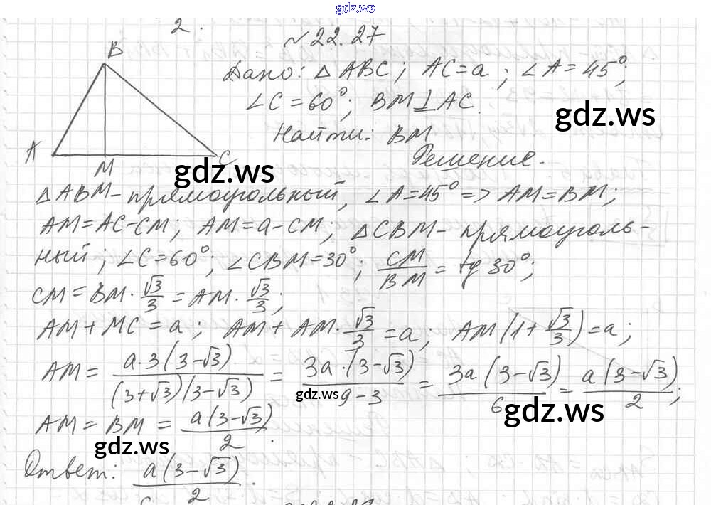 Готовый и полный ответ к § 22. Решение прямоугольных треугольников Глава 4. Решение прямоугольных треугольников - Геометрии 8 класс Мерзляк Учебник Углубленный уровень Алгоритм успеха ФГОС