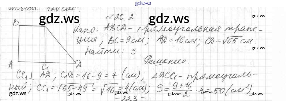 Готовый и полный ответ к § 26. Площадь трапеции Глава 5. Площадь многоугольника - Геометрии 8 класс Мерзляк Учебник Углубленный уровень Алгоритм успеха ФГОС