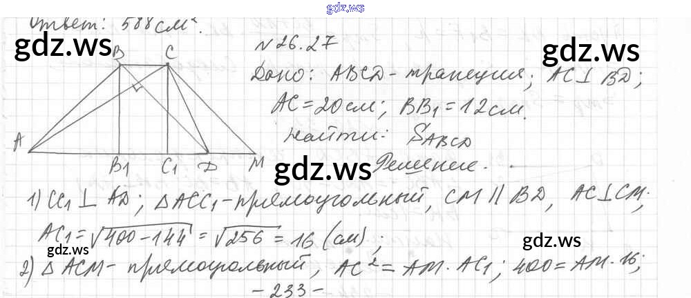 Готовый и полный ответ к § 26. Площадь трапеции Глава 5. Площадь многоугольника - Геометрии 8 класс Мерзляк Учебник Углубленный уровень Алгоритм успеха ФГОС