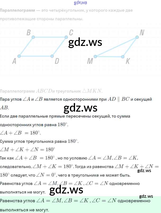 Готовый ответ § 2. Параллелограмм. Свойства параллелограмма Глава 1. Четырехугольники - Геометрии 8 класс Мерзляк Учебник Алгоритм успеха ФГОС