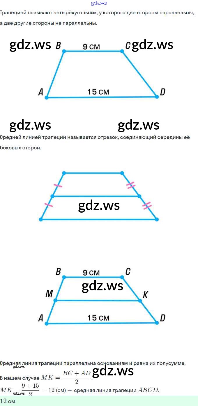 Готовый ответ § 8. Трапеция Глава 1. Четырехугольники - Геометрии 8 класс Мерзляк Учебник Алгоритм успеха ФГОС