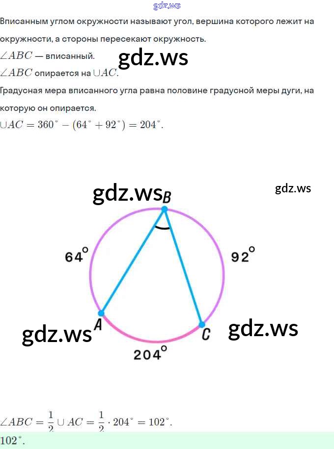 Готовый ответ § 9. Центральные и вписанные углы Глава 1. Четырехугольники - Геометрии 8 класс Мерзляк Учебник Алгоритм успеха ФГОС