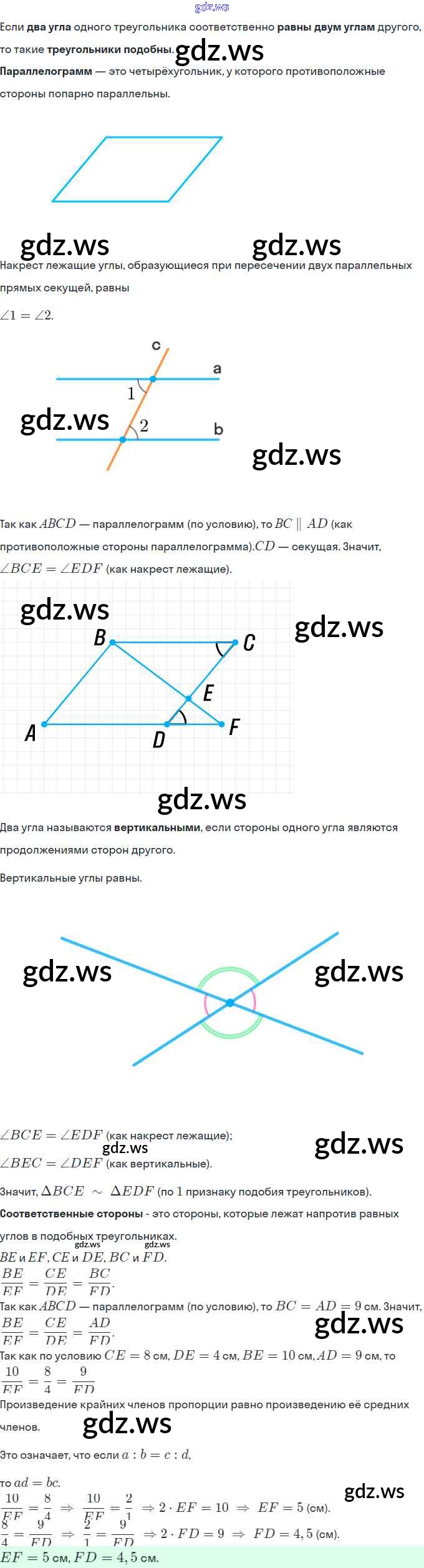 Готовый ответ § 13. Первый признак подобия треугольника. Свойство пересекающихся хорд. Свойство касательной и секущей. Теорема Менелая. Теорема Птолемея. Глава 2. Подобие треугольников - Геометрии 8 класс Мерзляк Учебник Алгоритм успеха ФГОС