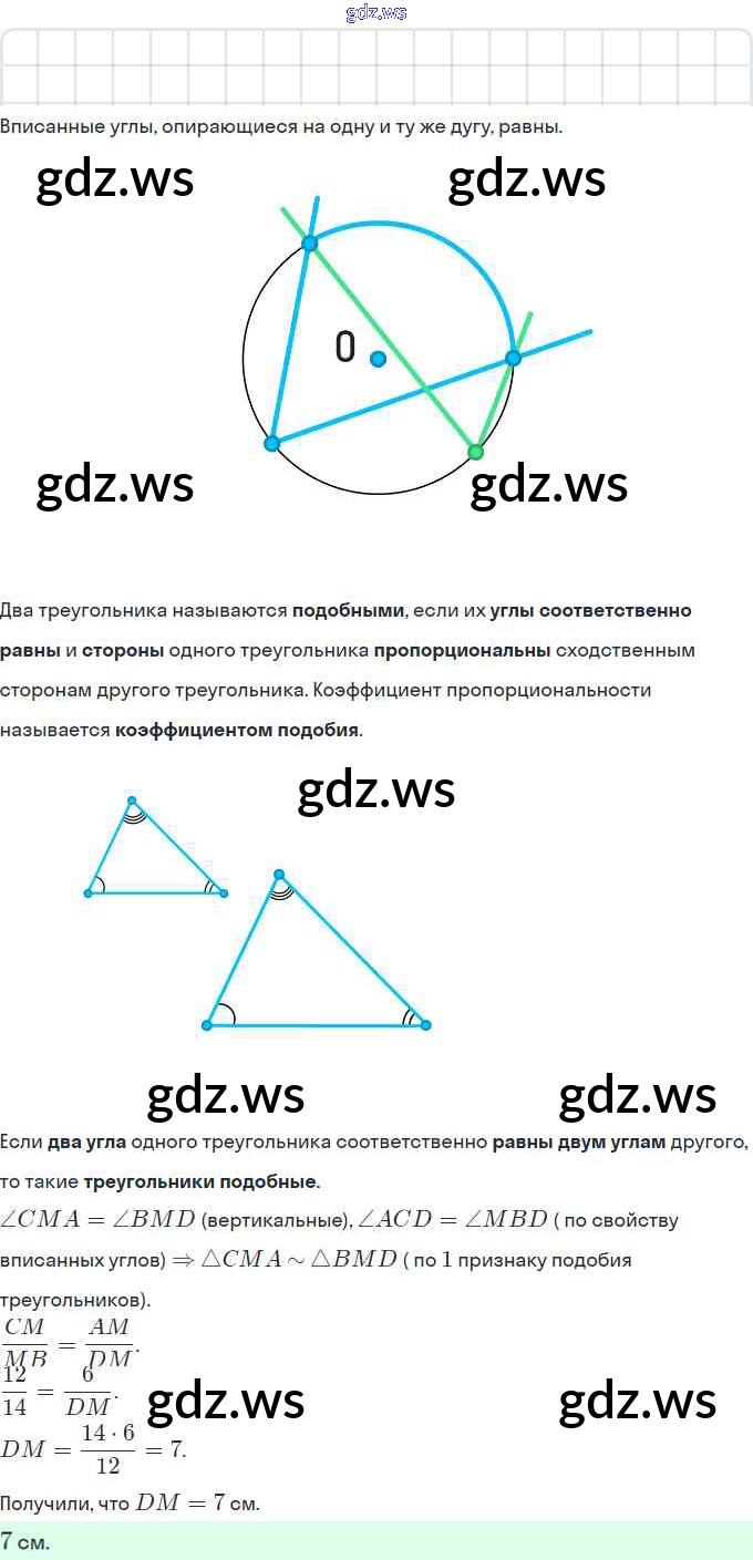 Готовый ответ § 13. Первый признак подобия треугольника. Свойство пересекающихся хорд. Свойство касательной и секущей. Теорема Менелая. Теорема Птолемея. Глава 2. Подобие треугольников - Геометрии 8 класс Мерзляк Учебник Алгоритм успеха ФГОС