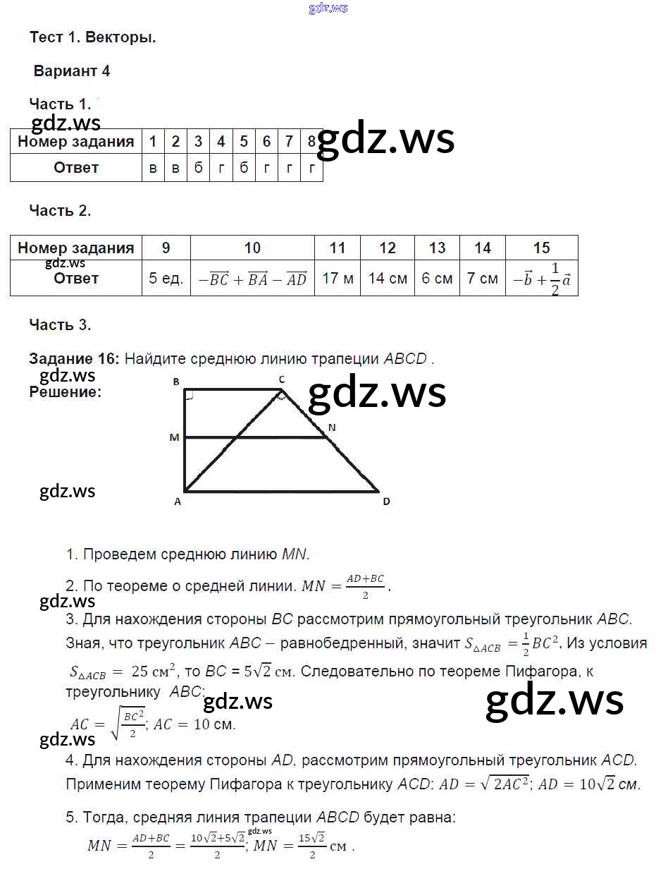Готовый и полный ответ к Тема 1. Варианты - Геометрии 9 класс Фарков Тесты УМК ФГОС