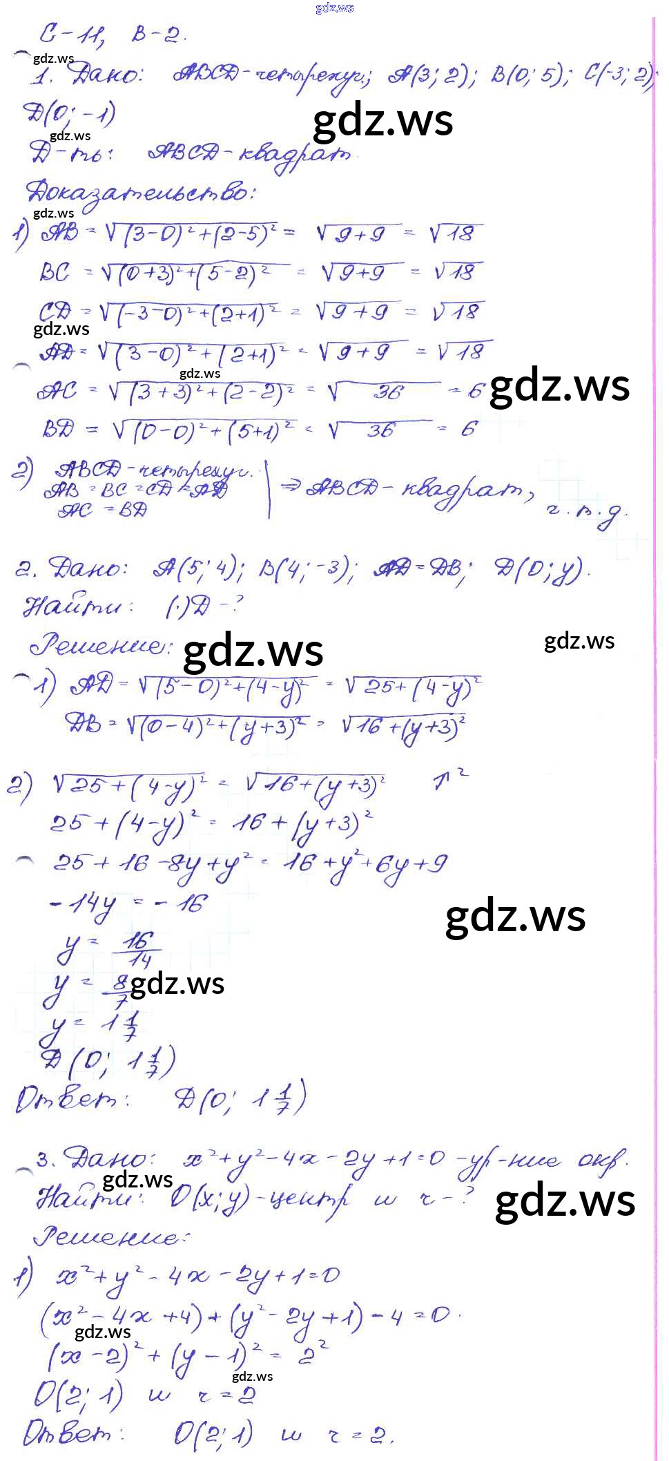 Готовый и полный ответ к СР-11. Варианты Самостоятельные работы - Геометрии 9 класс Иченская Самостоятельные и контрольные работы ФГОС