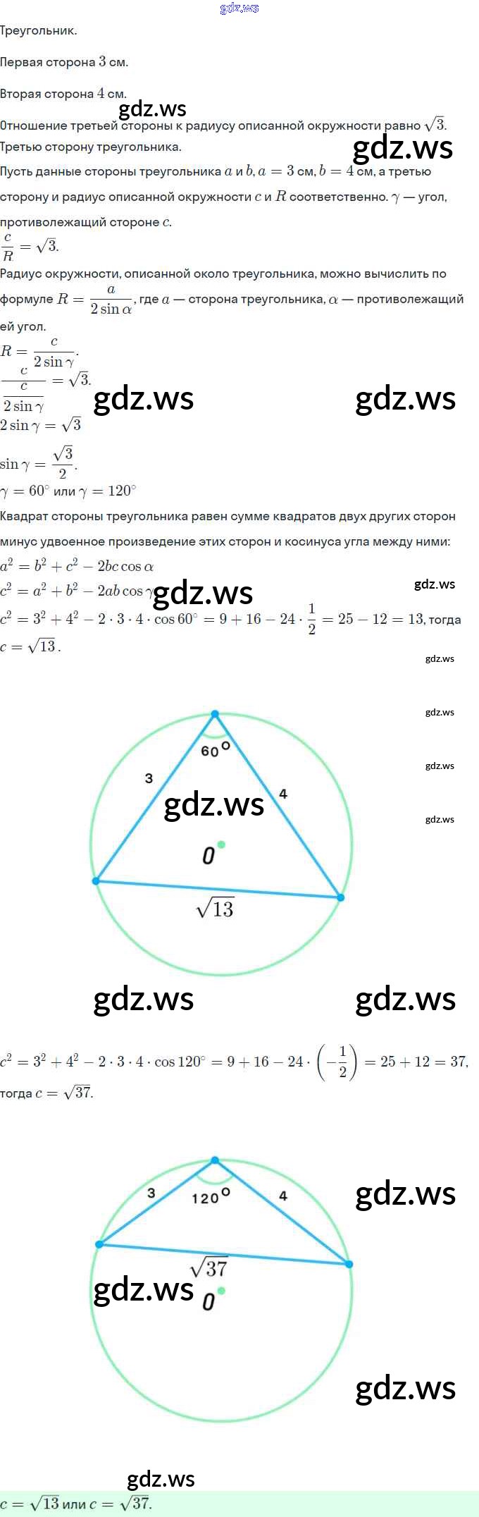 Готовый и полный ответ к §3. Теорема синусов - Геометрии 9 класс Мерзляк Рабочая тетрадь Алгоритм успеха ФГОС