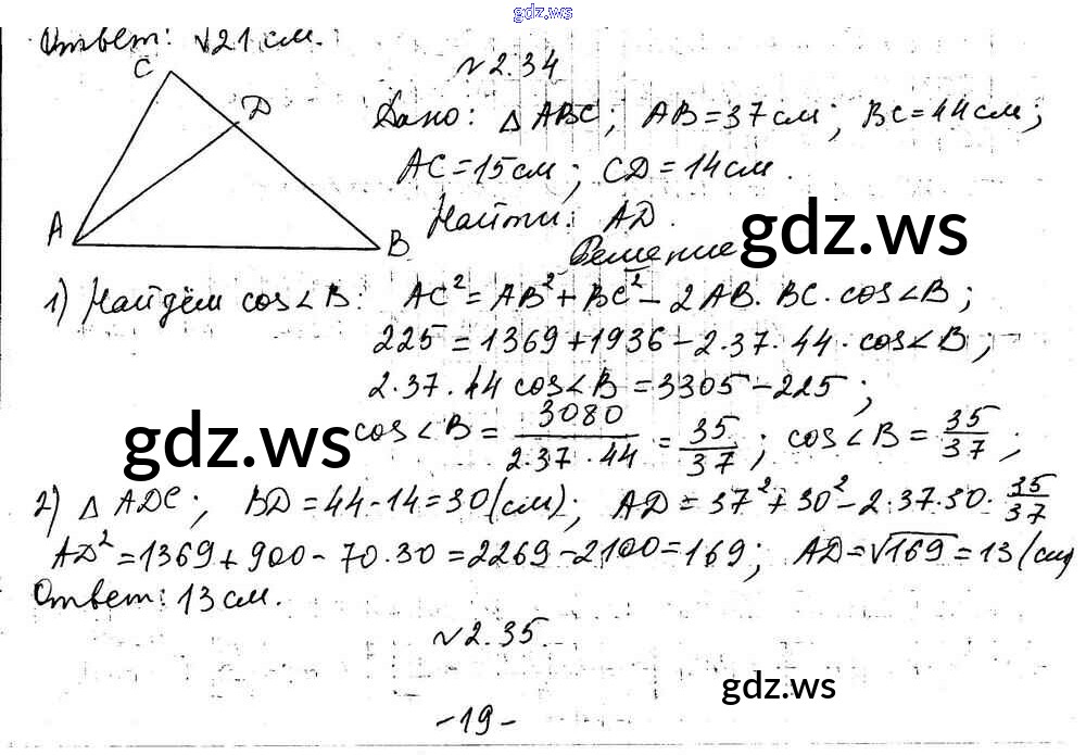 Готовый и полный ответ к §2 Глава 1. Решение треугольников - Геометрии 9 класс Мерзляк Учебник Углубленный уровень ФГОС