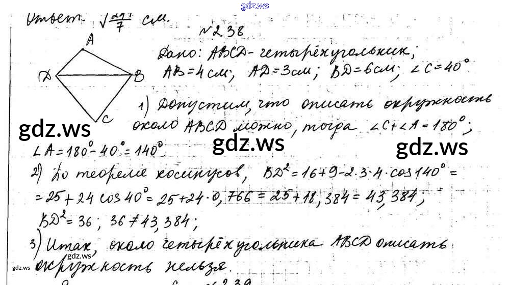 Готовый и полный ответ к §2 Глава 1. Решение треугольников - Геометрии 9 класс Мерзляк Учебник Углубленный уровень ФГОС