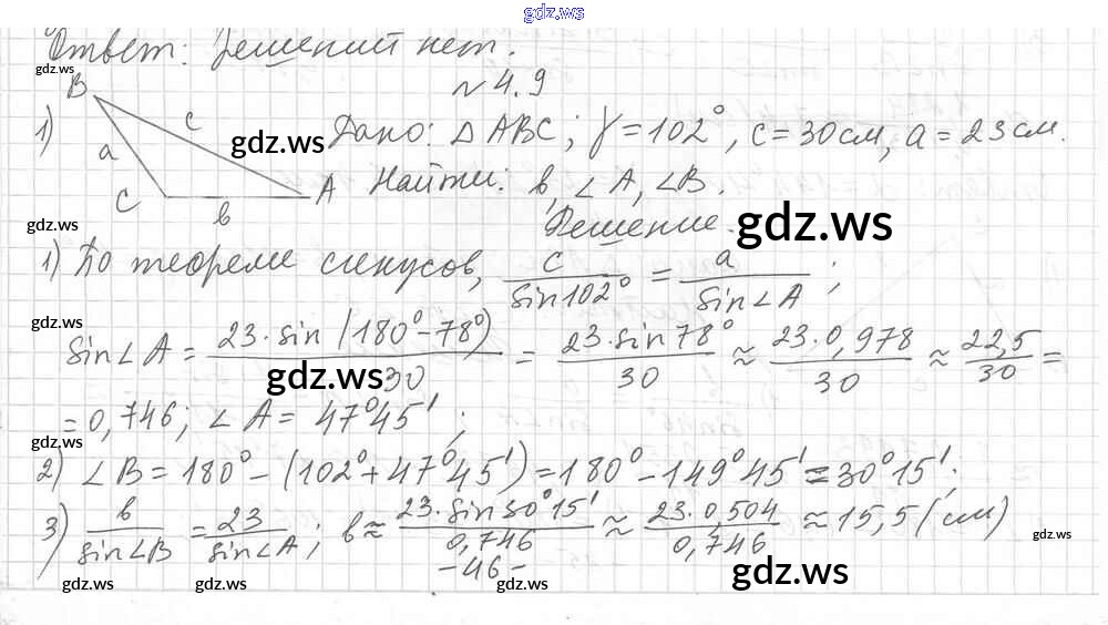 Готовый и полный ответ к §4 Глава 1. Решение треугольников - Геометрии 9 класс Мерзляк Учебник Углубленный уровень ФГОС