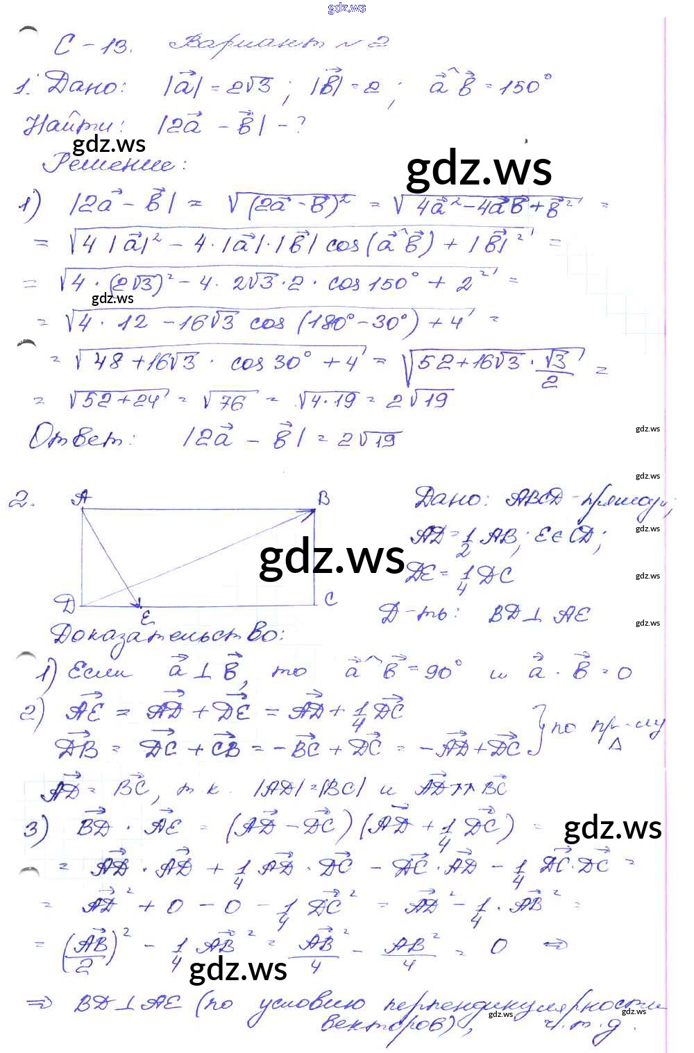 Готовый и полный ответ к СР-13. Варианты Самостоятельные работы - Геометрии 9 класс Зив Дидактические материалы ФГОС