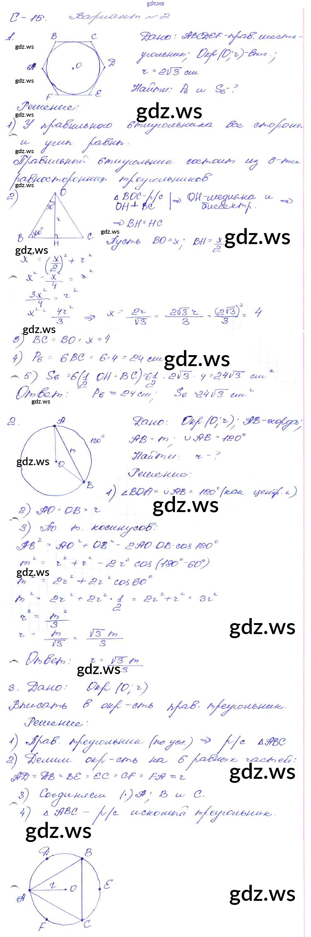 Готовый и полный ответ к СР-15. Варианты Самостоятельные работы - Геометрии 9 класс Зив Дидактические материалы ФГОС