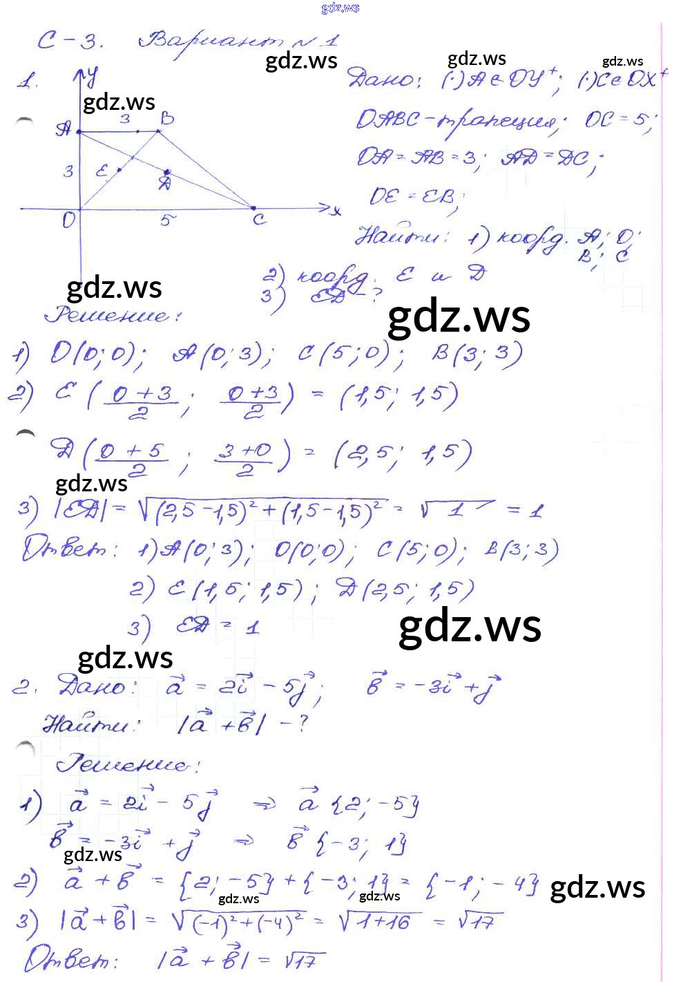 Готовый и полный ответ к СР-3. Варианты Самостоятельные работы - Геометрии 9 класс Зив Дидактические материалы ФГОС