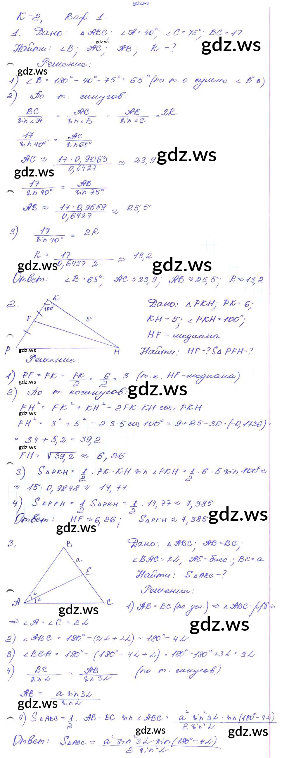 Готовый и полный ответ к КР-2. Варианты Контрольные работы - Геометрии 9 класс Зив Дидактические материалы ФГОС