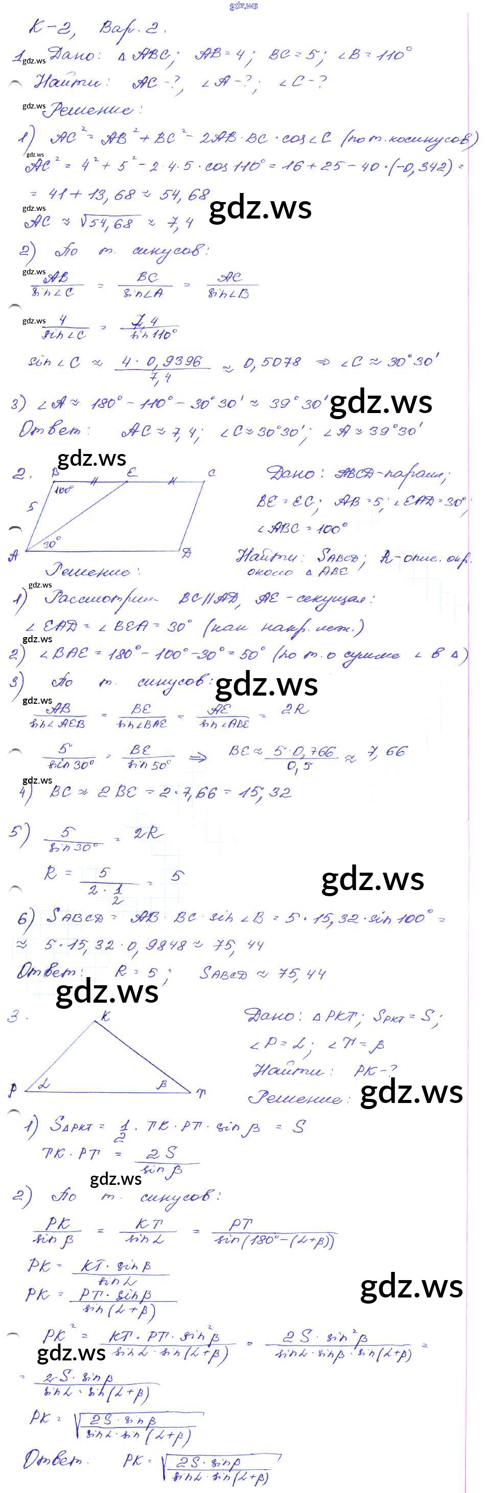 Готовый и полный ответ к КР-2. Варианты Контрольные работы - Геометрии 9 класс Зив Дидактические материалы ФГОС
