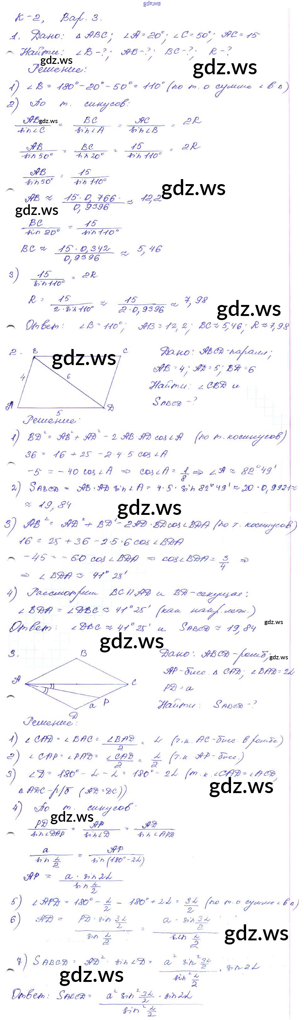 Готовый и полный ответ к КР-2. Варианты Контрольные работы - Геометрии 9 класс Зив Дидактические материалы ФГОС