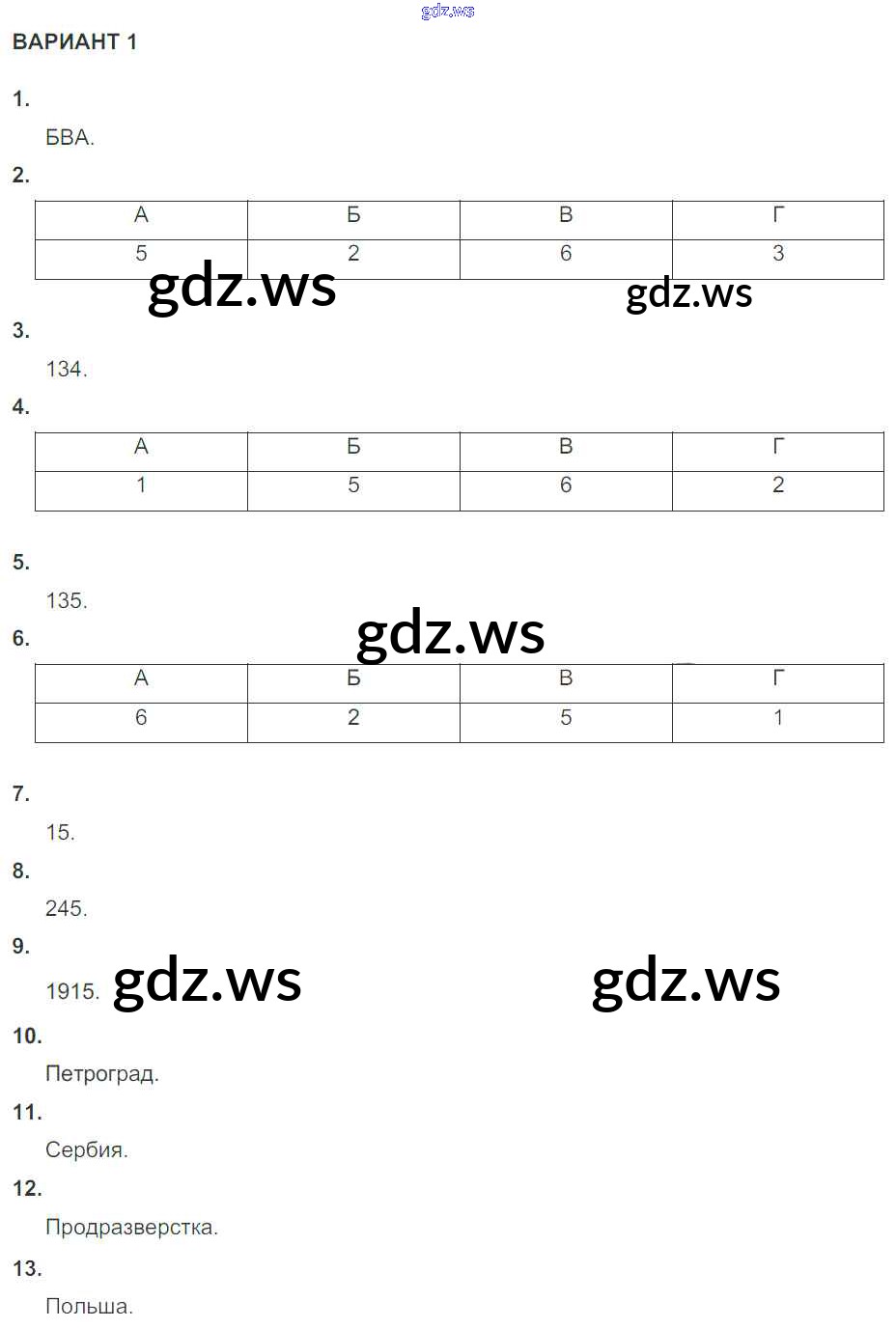Готовый ответ КР №1 (варианты) Глава 1 - Истории 10 класс Артасов Контрольные работы УМК ФГОС