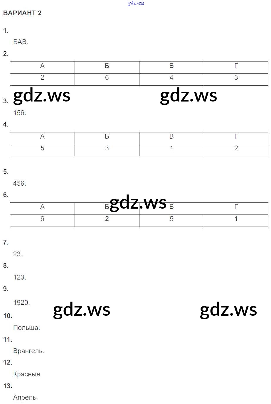 Готовый ответ КР №1 (варианты) Глава 1 - Истории 10 класс Артасов Контрольные работы УМК ФГОС