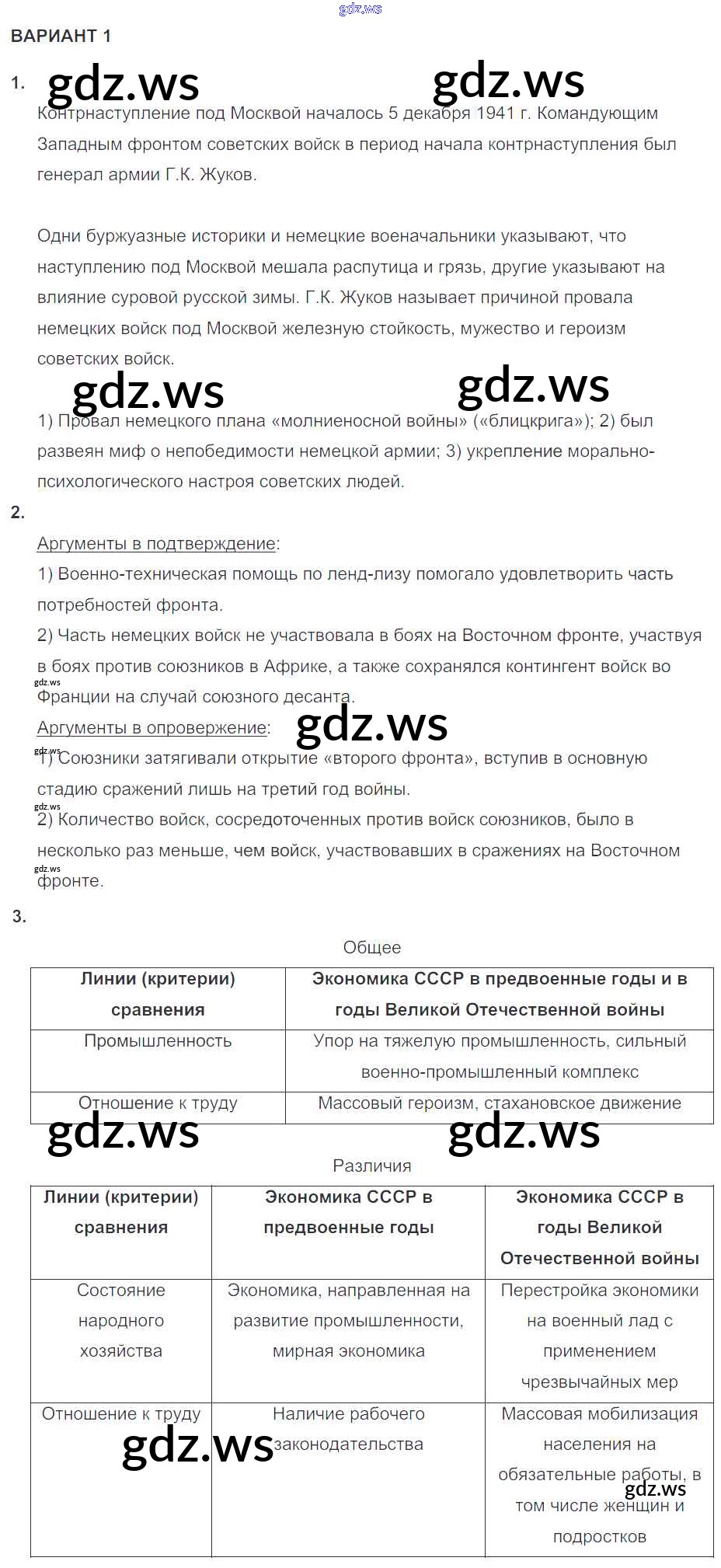 Готовый и полный ответ к КР №2 (варианты) Глава 3 - Истории 10 класс Артасов Контрольные работы УМК ФГОС