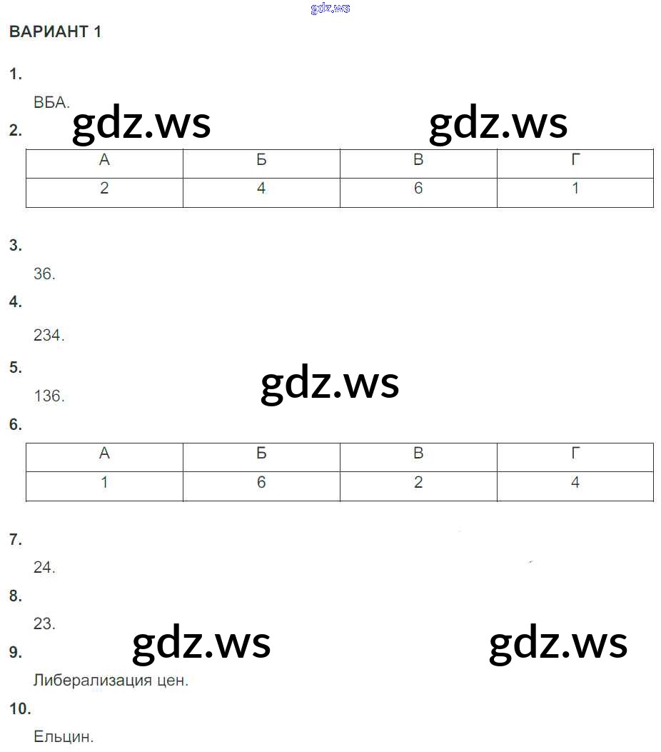 Готовый ответ КР №1 (варианты) Глава 5 - Истории 10 класс Артасов Контрольные работы УМК ФГОС