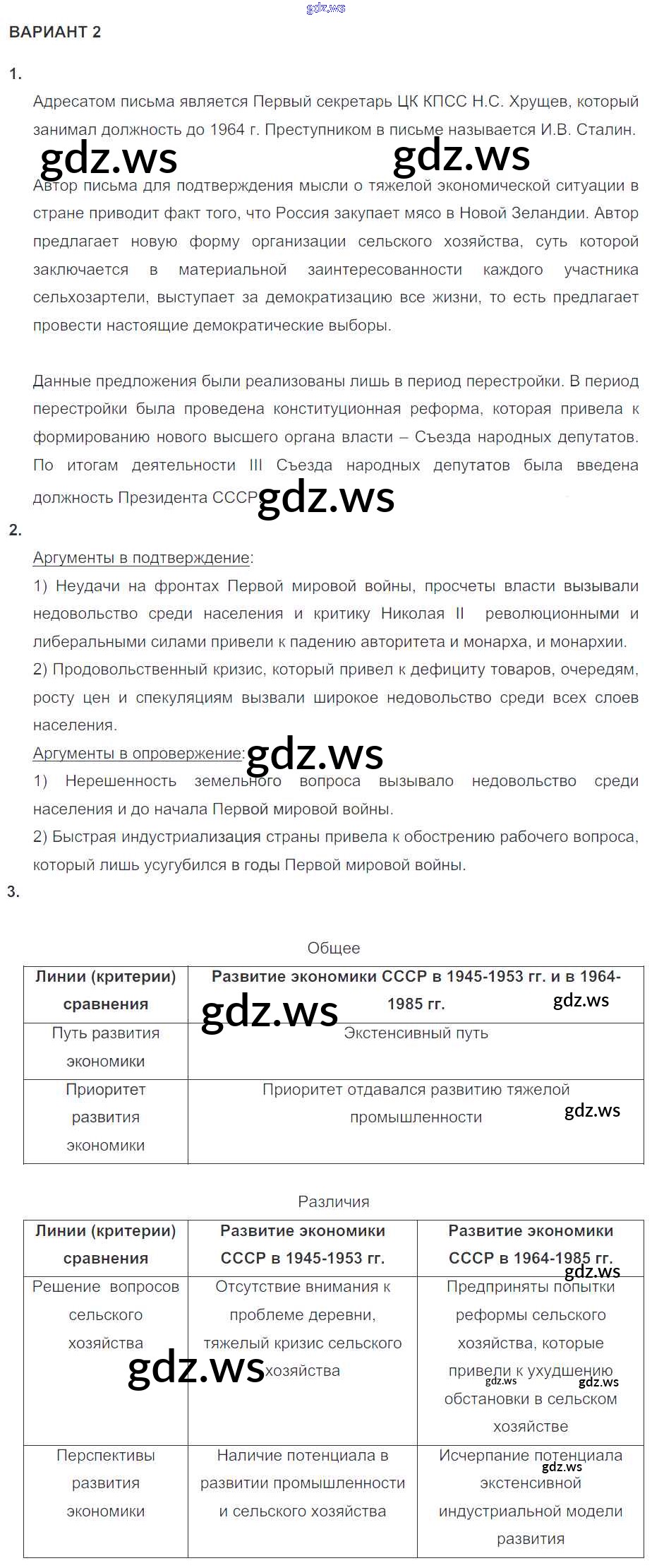 Готовый и полный ответ к КР №2 (варианты) Итоговые контрольные работы - Истории 10 класс Артасов Контрольные работы УМК ФГОС