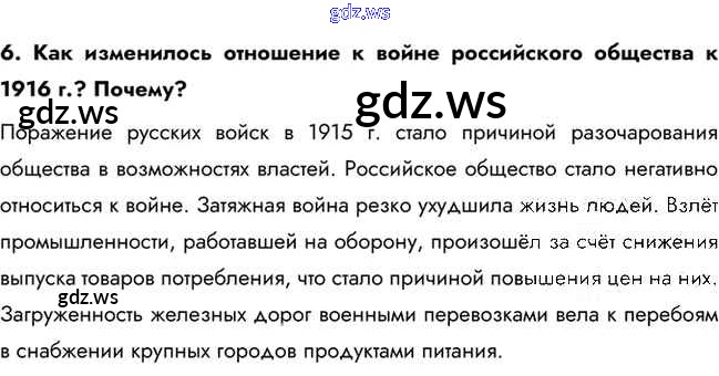 Готовый и полный ответ к Вопросы и задания для работы с текстом параграфа §2. Российская империя в Первой мировой войне - Истории 10 класс Горинов Учебник ФГОС