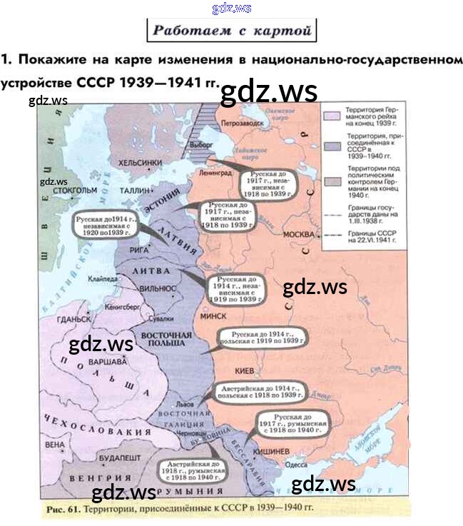 Готовый ответ Работаем с картой §20. СССР накануне Великой Отечественной войны - Истории 10 класс Горинов Учебник ФГОС