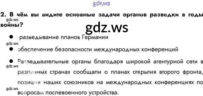 Готовый и полный ответ к Вопросы и задания для работы с текстом параграфа Советская разведка и контрразведка в годы Великой Отечественной войны - Истории 10 класс Горинов Учебник ФГОС