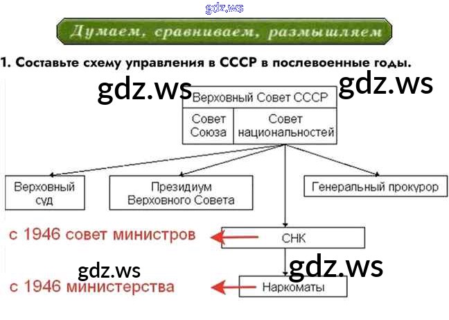 Готовый и полный ответ к Думаем, сравниваем, размышляем §28. Изменения в политической системе в послевоенные годы - Истории 10 класс Горинов Учебник ФГОС