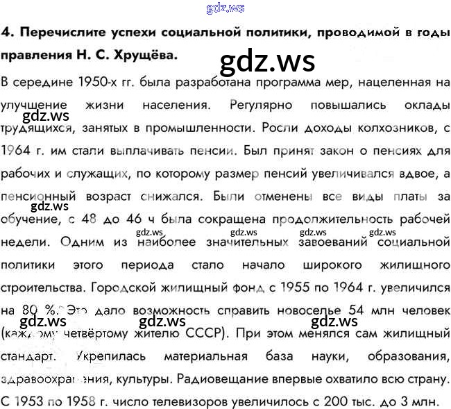 Готовый и полный ответ к Вопросы и задания для работы с текстом параграфа §32. Экономическое и социальное развитие в середине 1950-х — середине 1960-х гг. - Истории 10 класс Горинов Учебник ФГОС