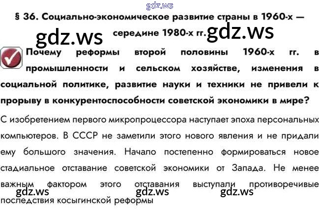 Готовый ответ Вопрос в начале параграфа §36. Социально-экономическое развитие страны в 1960-х — середине 1980-х гг. - Истории 10 класс Горинов Учебник ФГОС