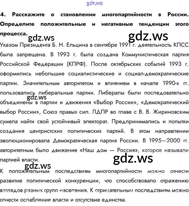 Готовый и полный ответ к Вопросы и задания для работы с текстом параграфа §46. Политическое развитие Российской Федерации в 1990-е гг. - Истории 10 класс Горинов Учебник ФГОС