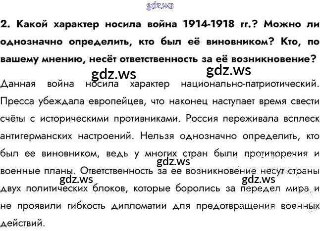 Готовый и полный ответ к Вопросы и задания §10. Первая мировая война - Истории 11 класс Загладин Учебник Базовый уровень Инновационная школа ФГОС