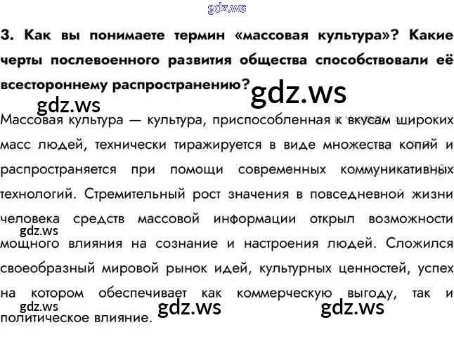 Готовый и полный ответ к Вопросы и задания §60. Основные тенденции развития мировой культуры во второй половине XX в. - Истории 11 класс Загладин Учебник Базовый уровень Инновационная школа ФГОС