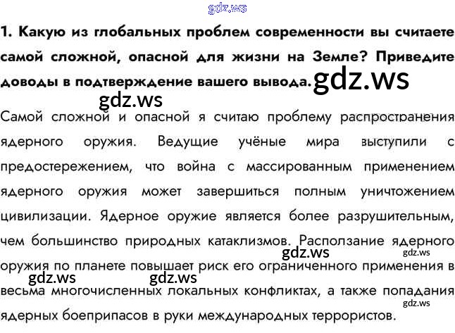 Готовый и полный ответ к Вопросы и задания §61. Глобальные угрозы человечеству и поиски путей их преодоления - Истории 11 класс Загладин Учебник Базовый уровень Инновационная школа ФГОС