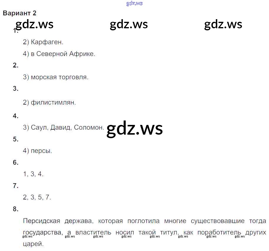 Готовый и полный ответ к Проверочная работа-2 Глава-5. Западная Азия в древности - Истории 5 класс Крючкова Проверочные и контрольные работы ФГОС