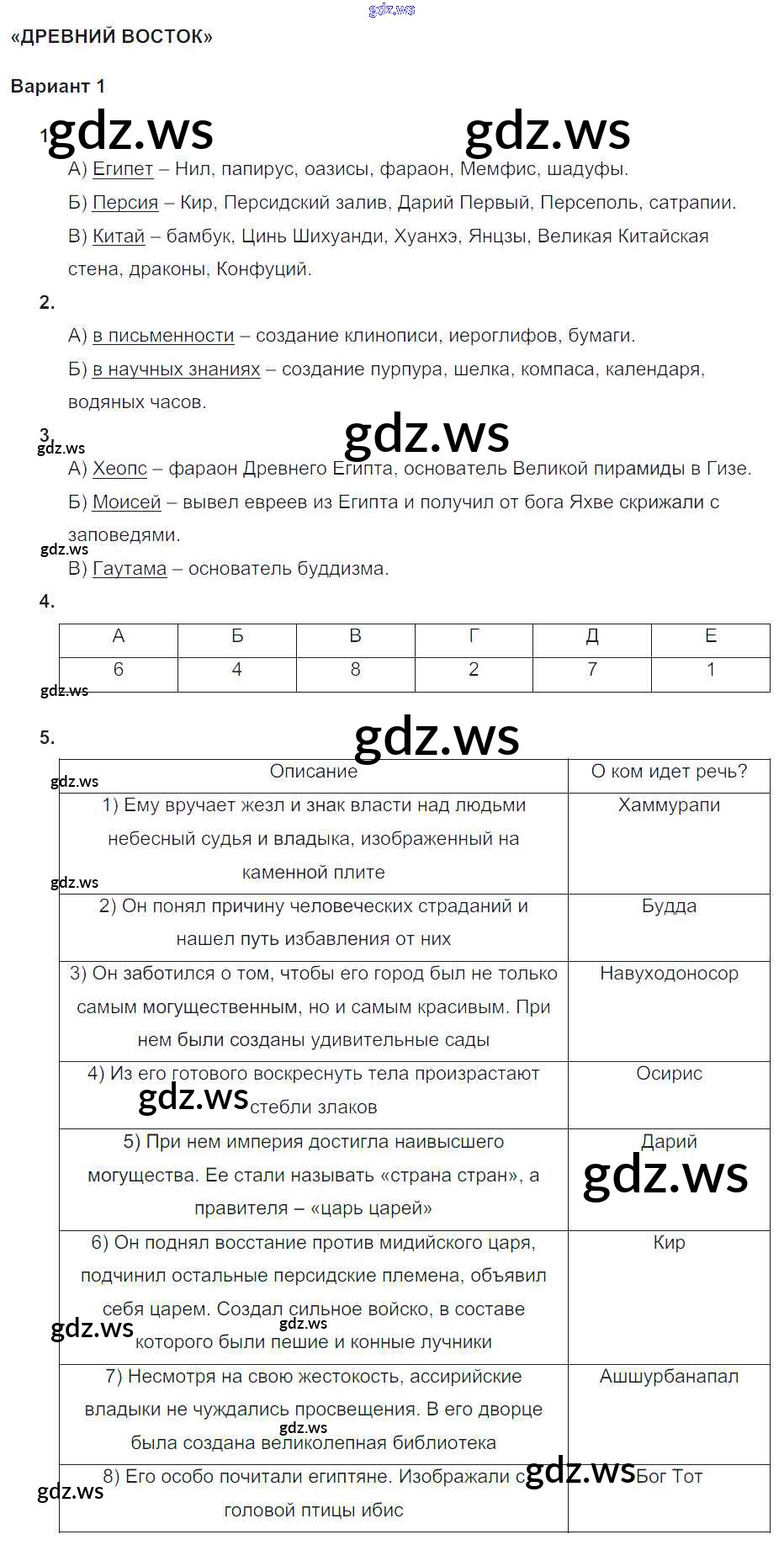 Готовый и полный ответ к КР-2. Древний Восток Контрольные работы - Истории 5 класс Саплина Тематический контроль ФГОС
