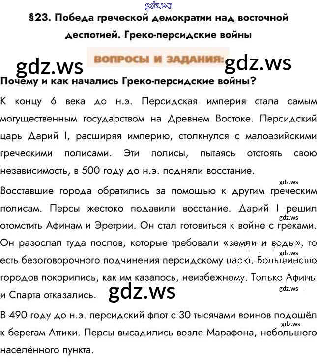 Готовый и полный ответ к Вопросы и задания §23. Греко-персидские войны - Истории 5 класс Уколова Учебник Сферы ФГОС