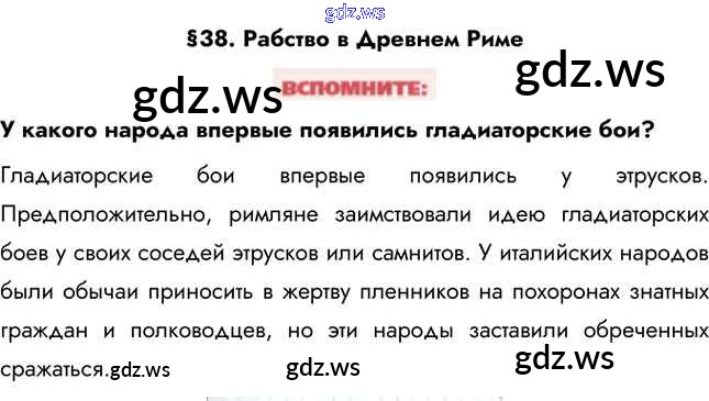 Готовый ответ Вспомните §38. Рабство в Древнем Риме - Истории 5 класс Уколова Учебник Сферы ФГОС