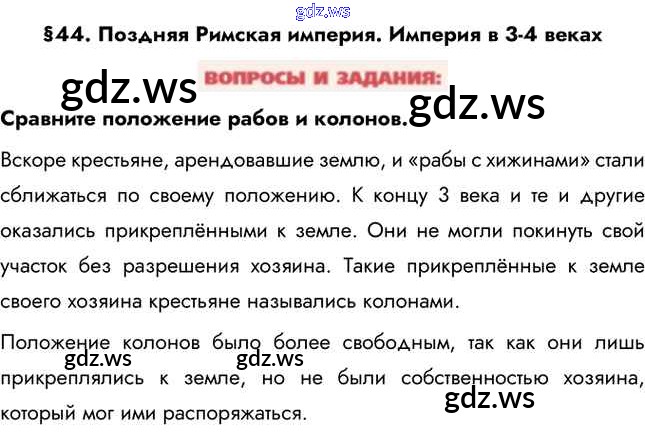 Готовый и полный ответ к Вопросы и задания §44. Империя в 3-4 веках - Истории 5 класс Уколова Учебник Сферы ФГОС