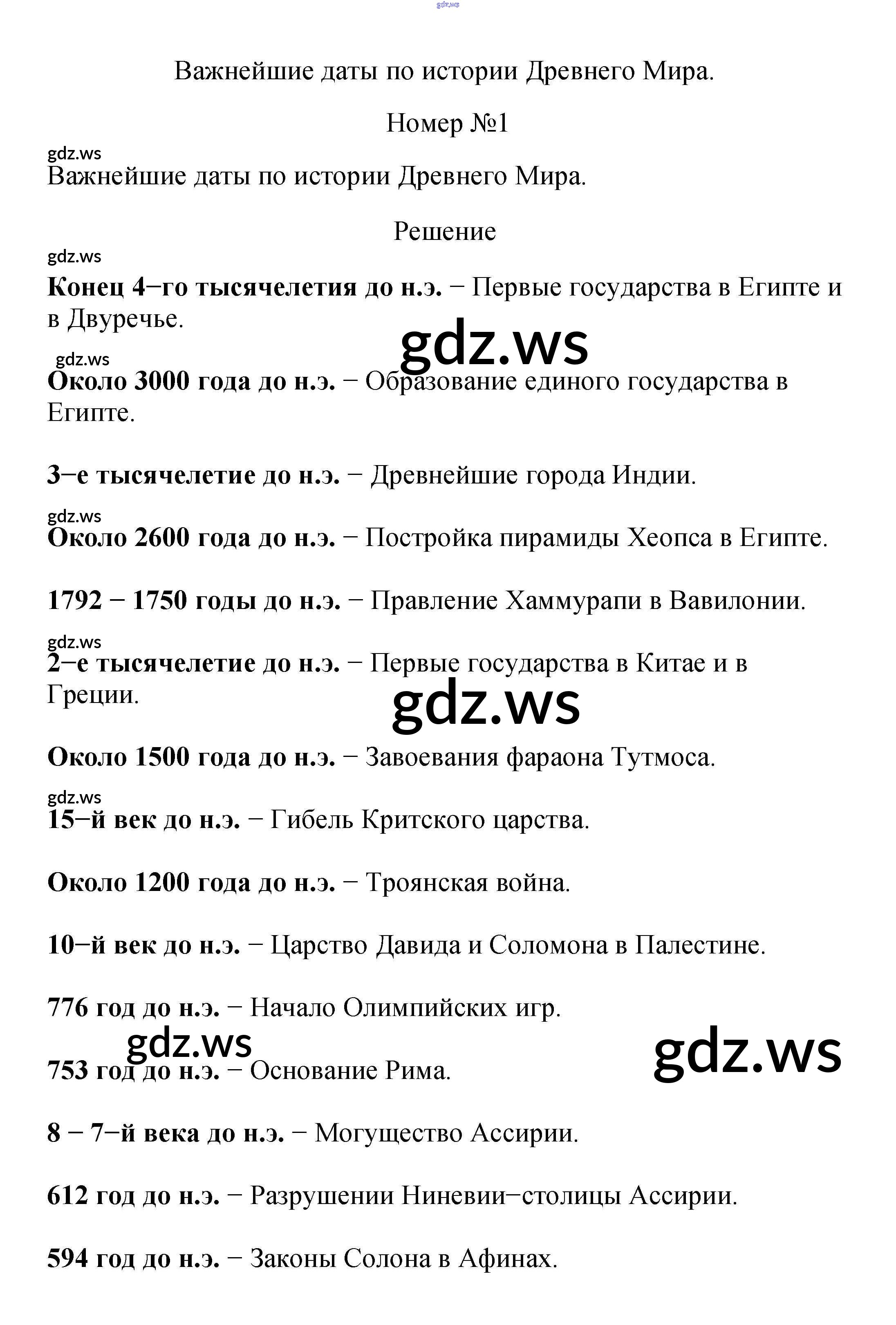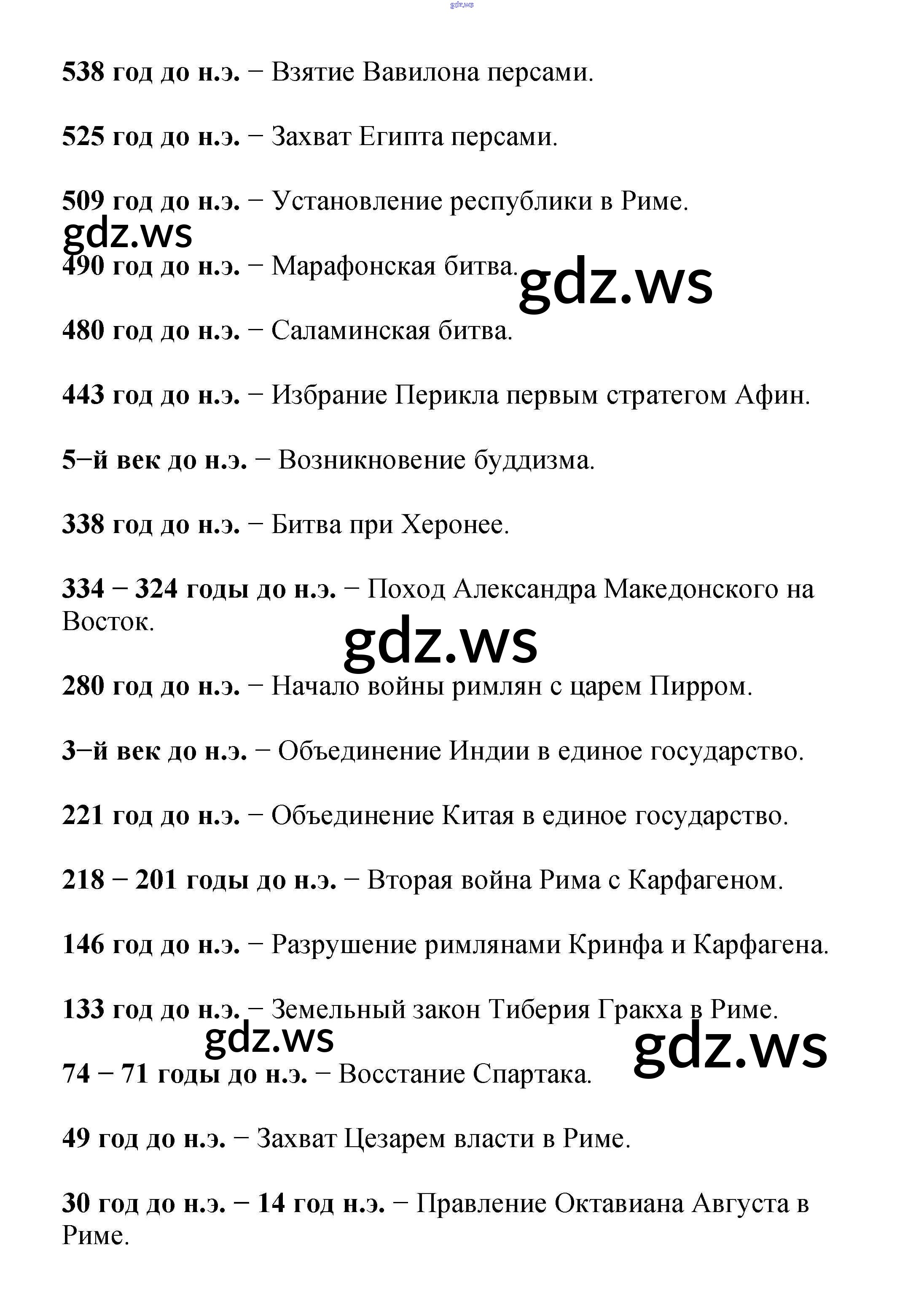 Готовый ответ Важнейшие даты по истории Древнего Мира Проверьте, хорошо ли вы помните историю Древнего мира - Истории 5 класс Вигасин Учебник ФГОС